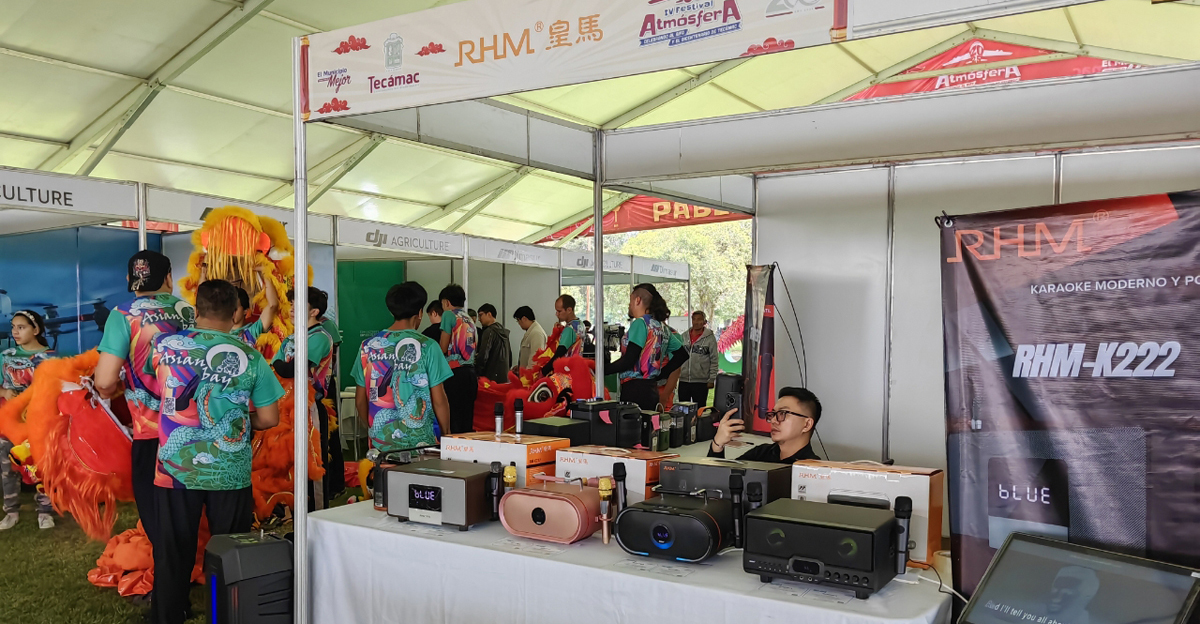 本屆受駐墨西哥大使館邀請參加本屆天空節(jié)的中資企業(yè)共13家,包括汽車行業(yè)代表上汽、廣汽、奇瑞、長城和吉利,電子通訊行業(yè)代表中興、OPPO、大疆等,RHM皇馬音響作為家電行業(yè)的代表,有幸也受邀參加了這次融合航空文化、城市慶典與國際交流的綜合性嘉年華,皇馬電器墨西哥公司總經(jīng)理黃偉東先生出席了這次盛會(huì)。