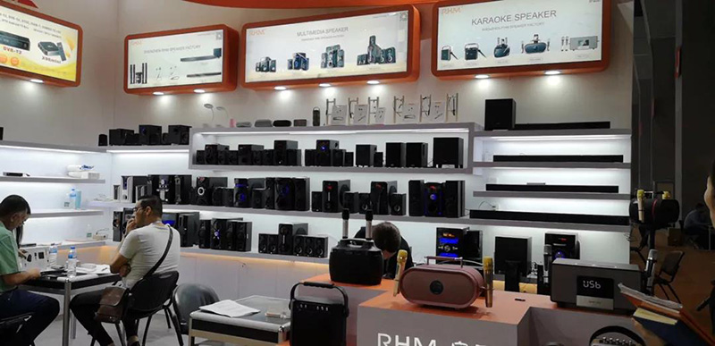 本屆廣交會(huì),RHM皇馬音響依然專注音頻產(chǎn)品,展示產(chǎn)品種類多樣,既有最新研發(fā)的WIFI音響、聲霸+DVB、降噪耳機(jī)、網(wǎng)絡(luò)電視盒、智能K歌音響等新產(chǎn)品系列,也有多媒體音響、拉桿音響、電唱機(jī)等。